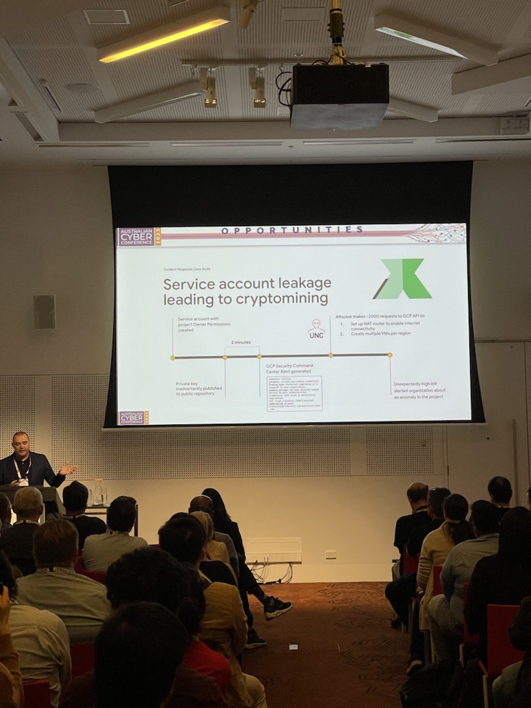 In any event, there were some interesting discussions on Service Account Keys by Stefan Avgoustakis and the impact if appropriate Identity and Access Management (IAM) controls are not put in place. He demonstrated an incident investigated by Mandiant’s IR team showcasing the impact.