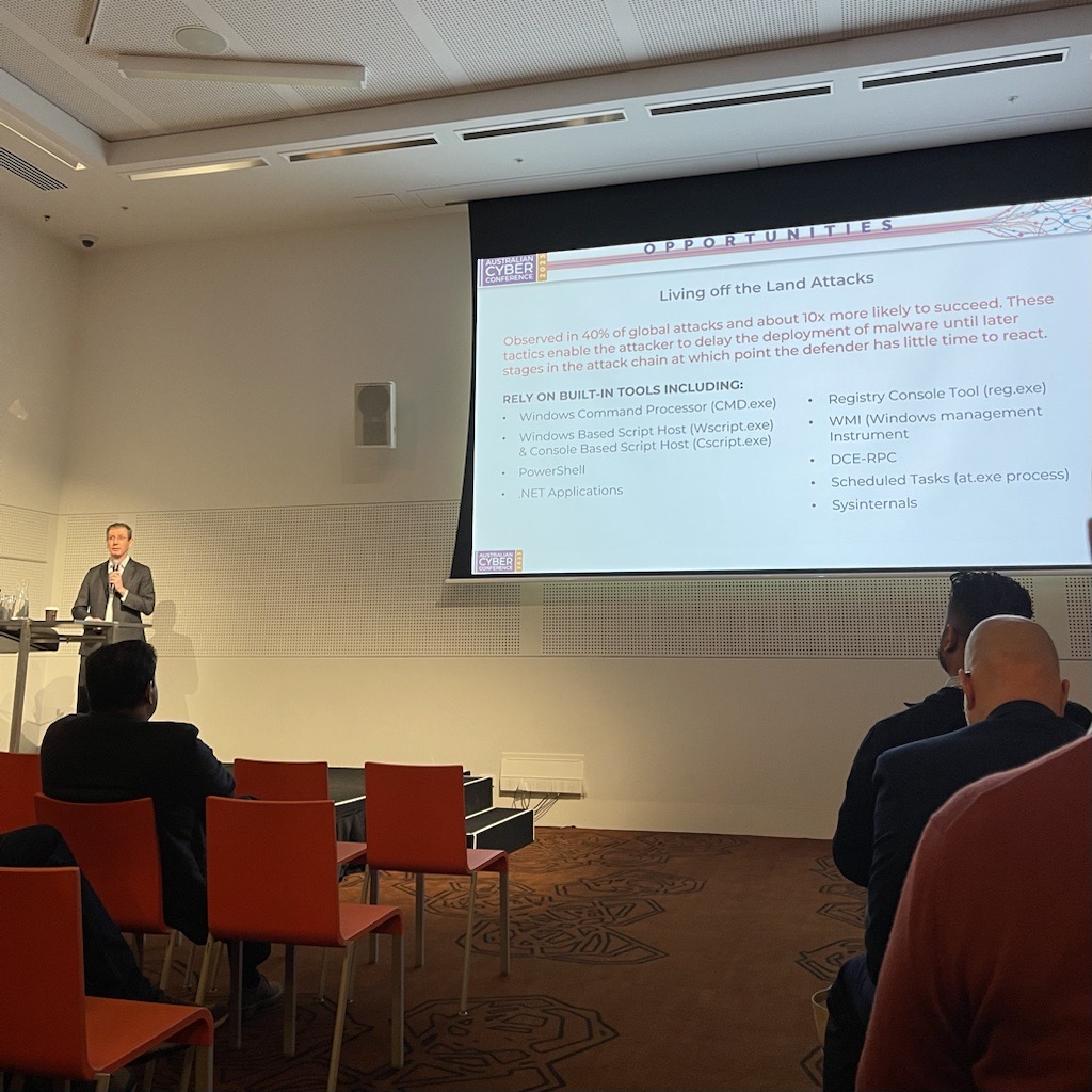 Another talk I saw, by Tony Jarvis, discussed the use of Living of The Land Binaries (LoLBins) in the attack chain.